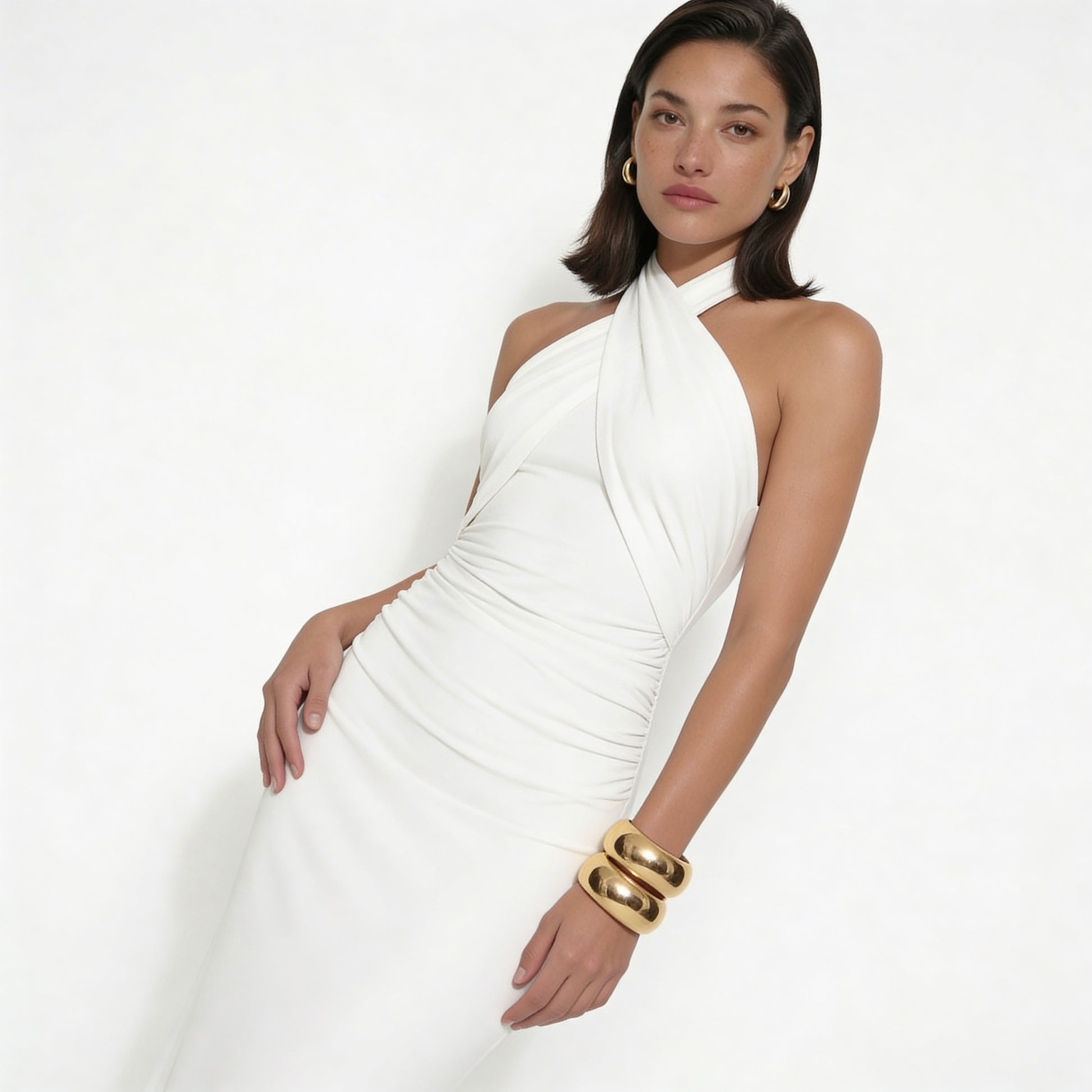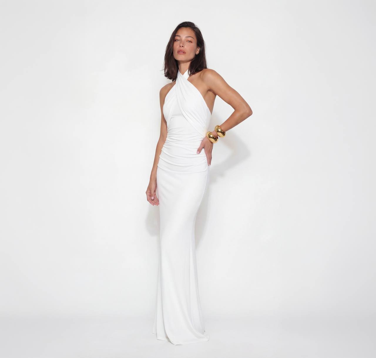 Сукня виготовлена з м'якого трикотажу, що забезпечує комфорт і легкість рухів. Тканина приємна на дотик та ідеально сідає по фігурі завдяки драпіруванню. Один з найцікавіших аспектів цієї сукні — це пелюстки на грудях. Вони універсальні і можуть бути зав'язані кількома способами за вашою фантазією.