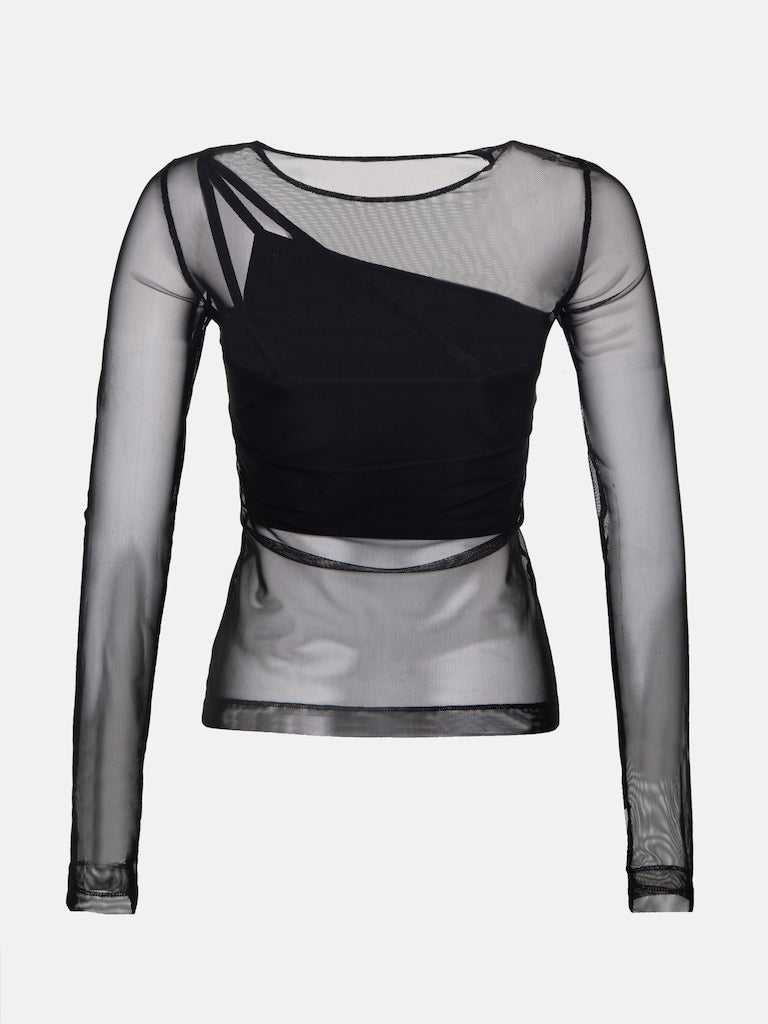 Стильне поєднання укороченого топу та мʼякої еластичної сітки. Новий модний сезон закликає до зухвалої сміливості та потребує максимальної впевненості в собі. Дана модель поєднує в собі одразу кілька останніх трендів: