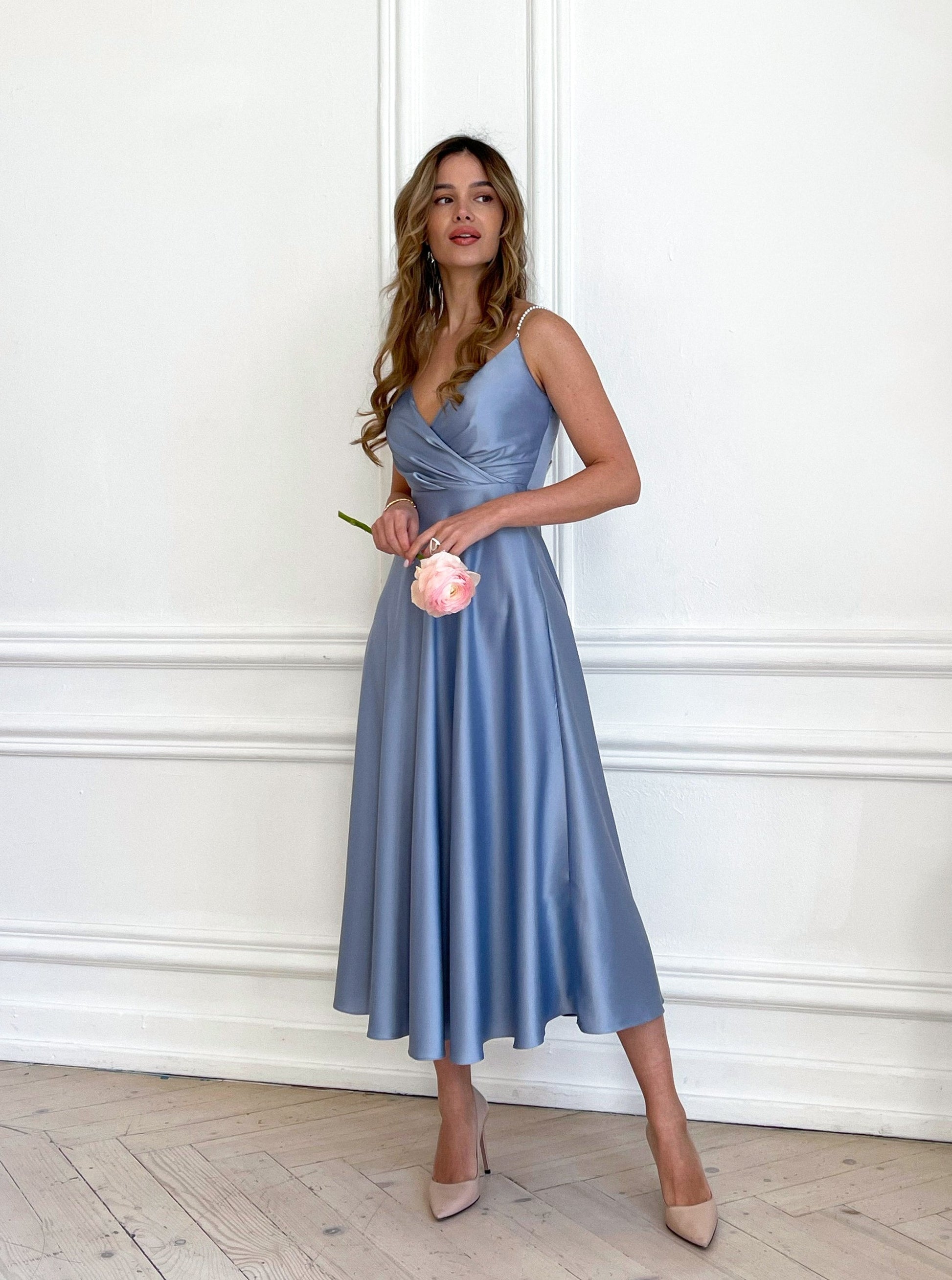 Наша найжіночніша та ніжна сукня. Незвичайний елемент у вигляді перлинних бретелей додає образу вишуканості та завершеності, не вимагаючи багато додаткових аксесуарів.