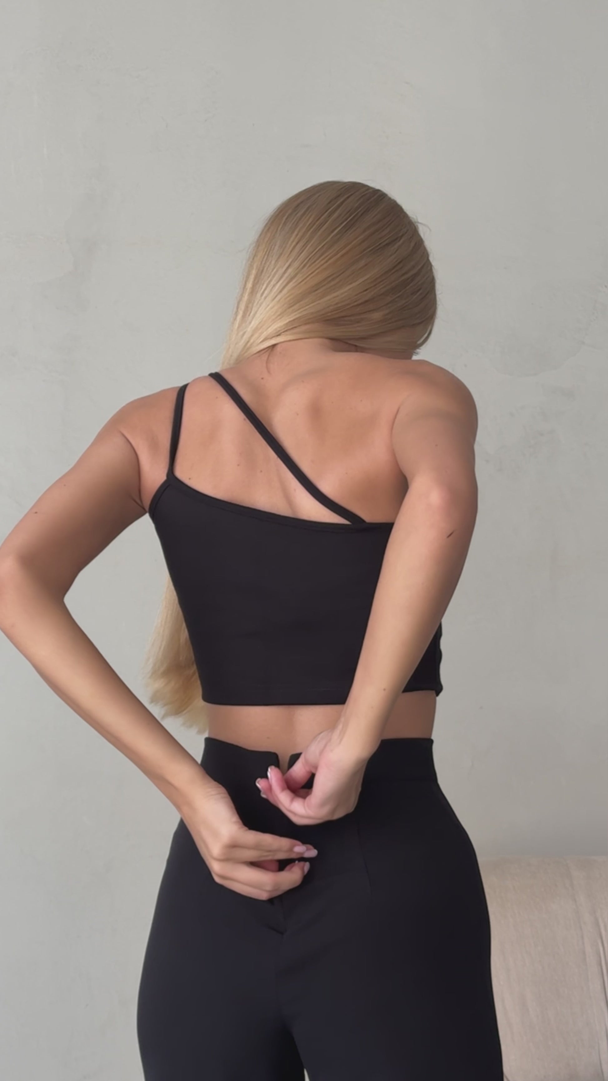 – Параметри моделі: 85-62-92, зріст 171см. На ній топ/сітка S, брюки XS. Довжина брюк 110см