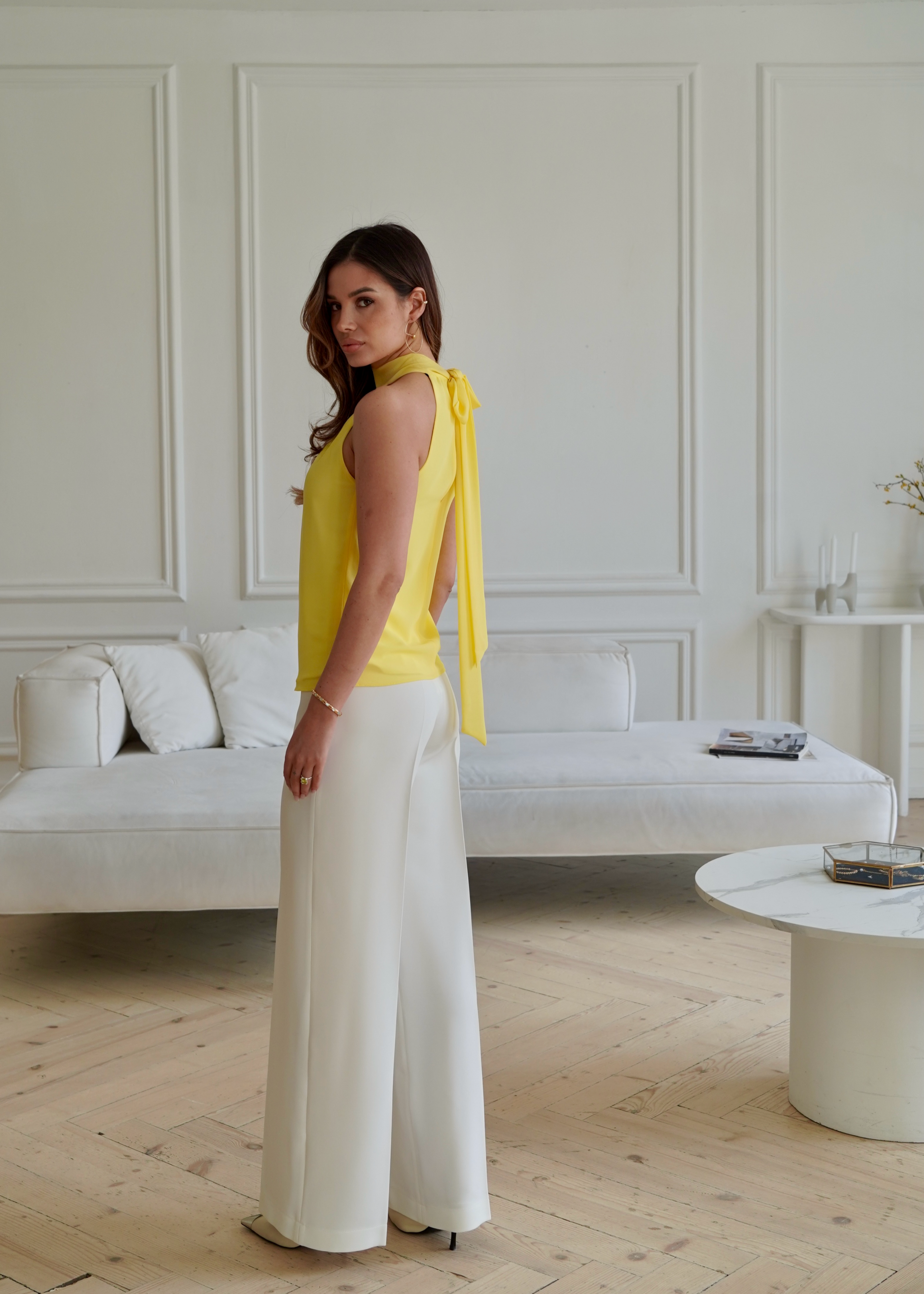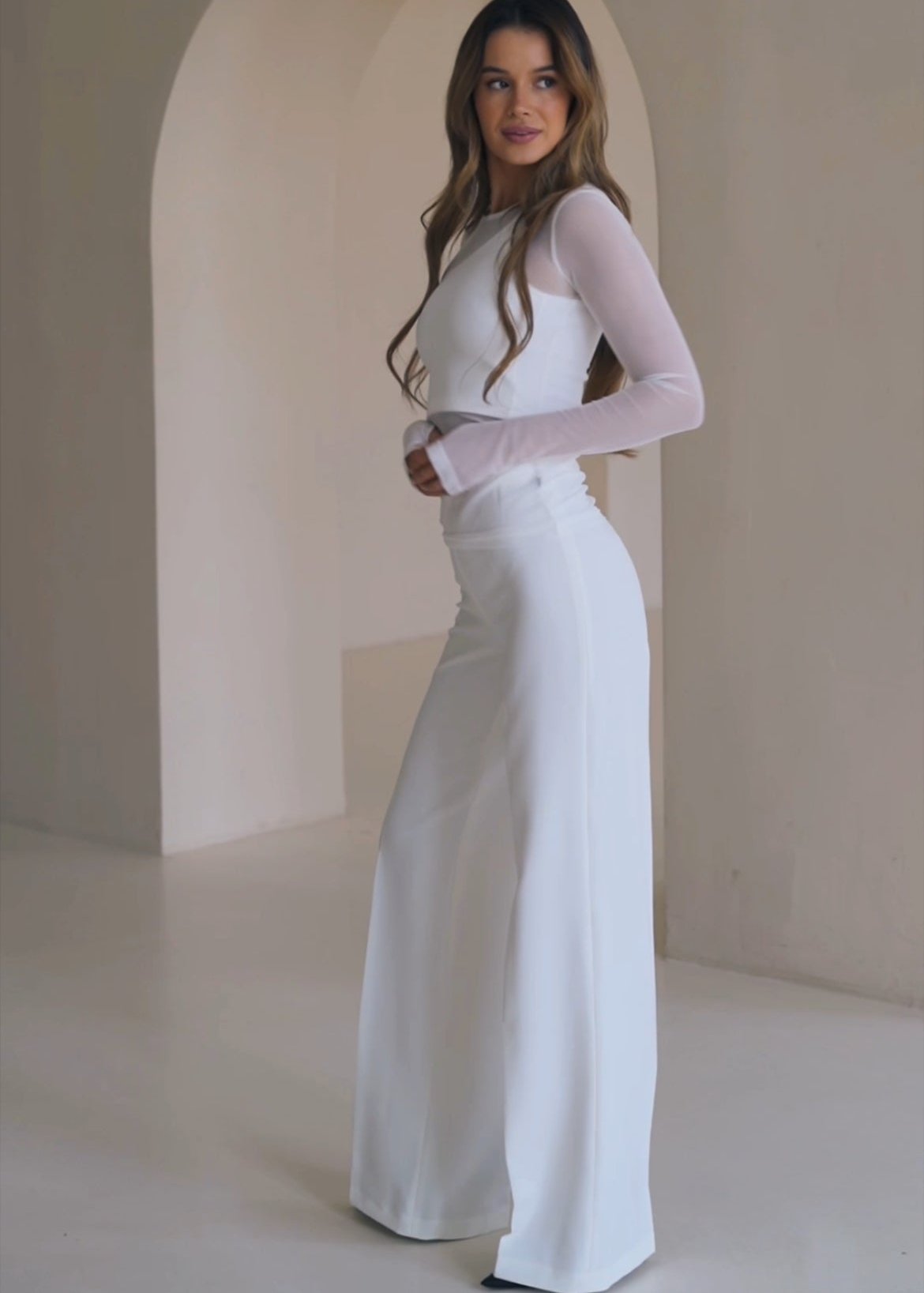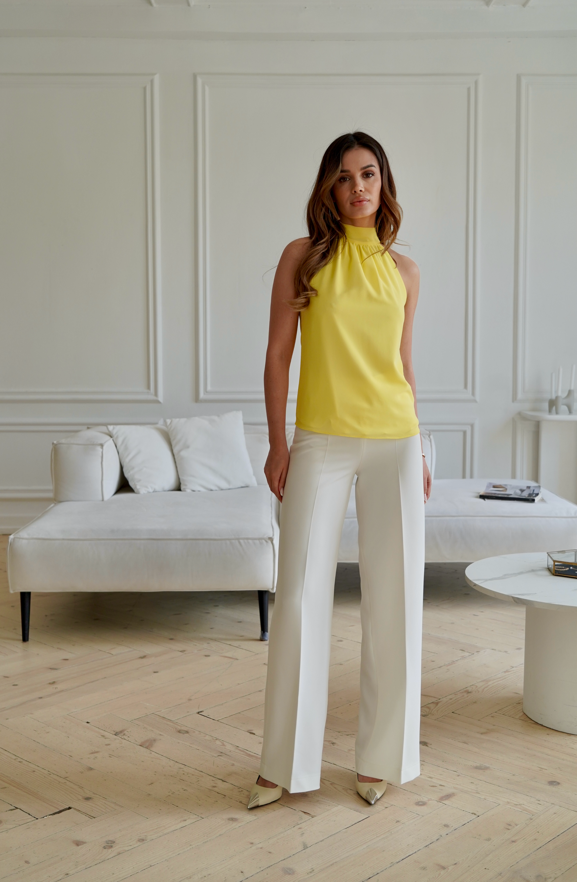 Брюки Палаццо з Костюмної Тканини Молочний Alicante