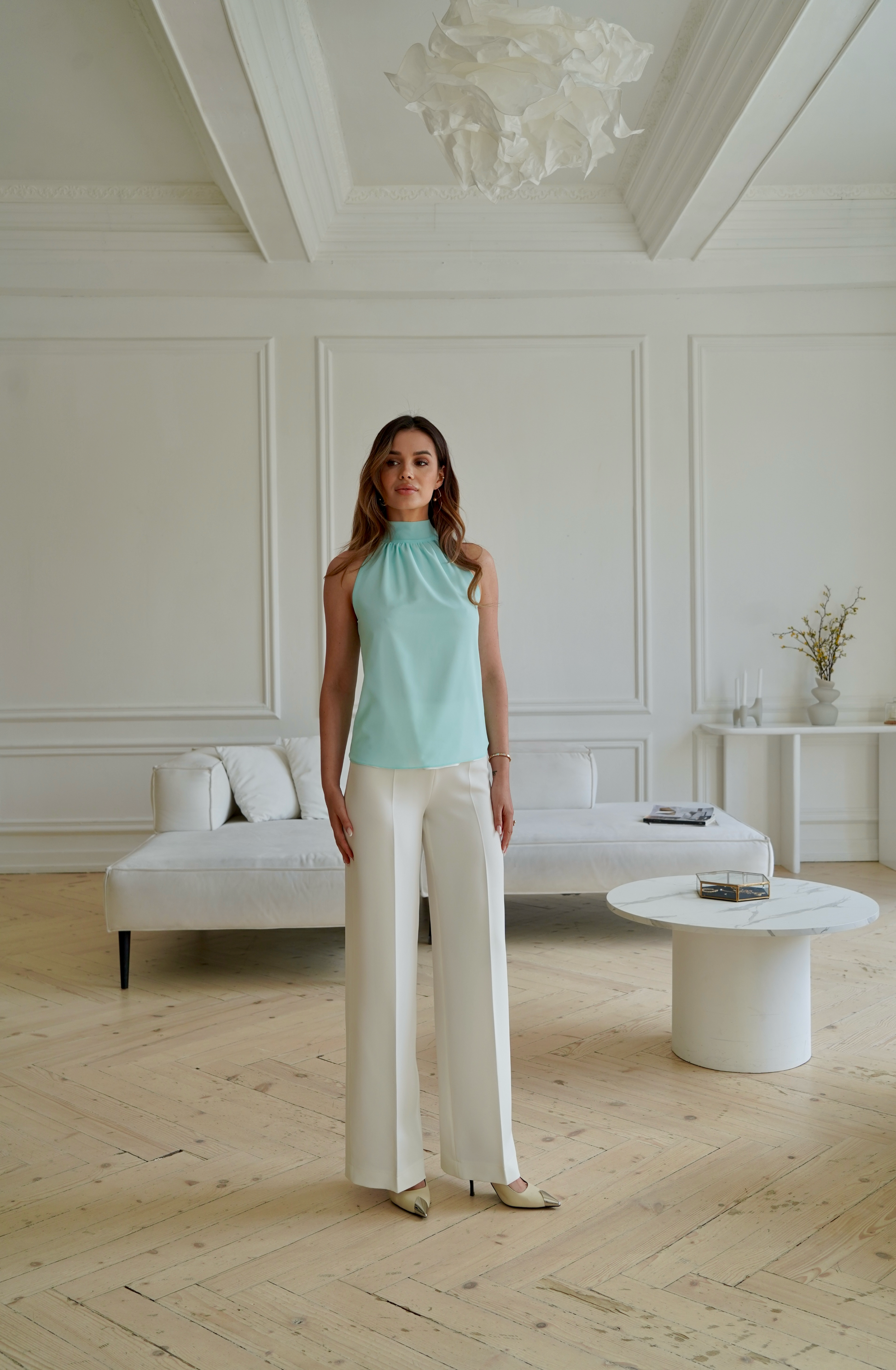- Візуальне витягування фігури. Широкі штани до підлоги візуально витягують силует, роблячи його більш струнким і пропорційним. Вони допоможуть сформувати баланс в образі.