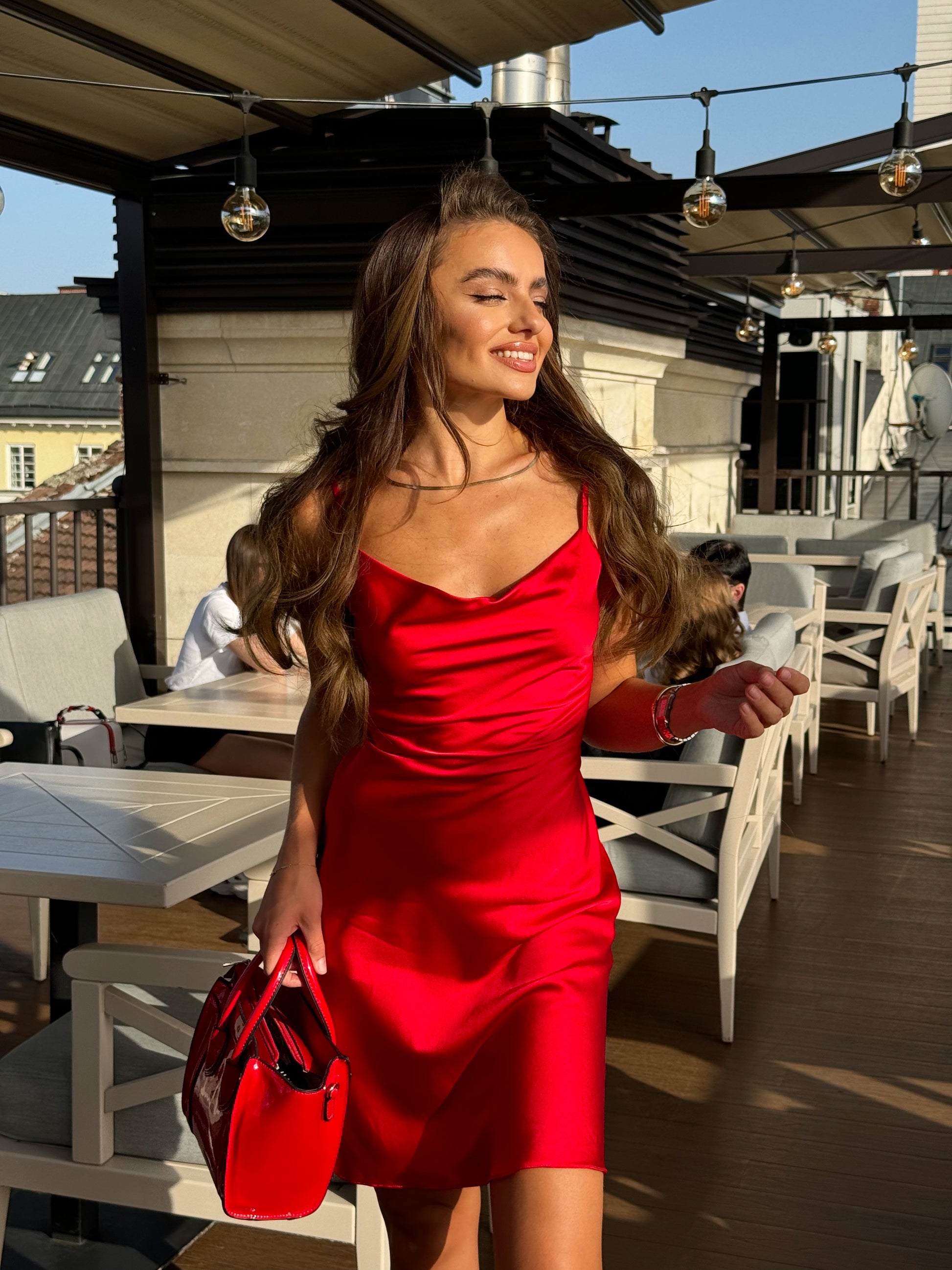 Поринь у світ позачасової елегантності з нашою шовковою сукнею. Неймовірно приємна тканина огортає вас розкішшю, забезпечуючи ідеальну посадку завдяки своїм зав’язкам на спинці. Створена для тих, хто цінує класику, ця сукня випромінює стриману розкіш та елегантність, що робить її бездоганним вибором для будь-якої події.
