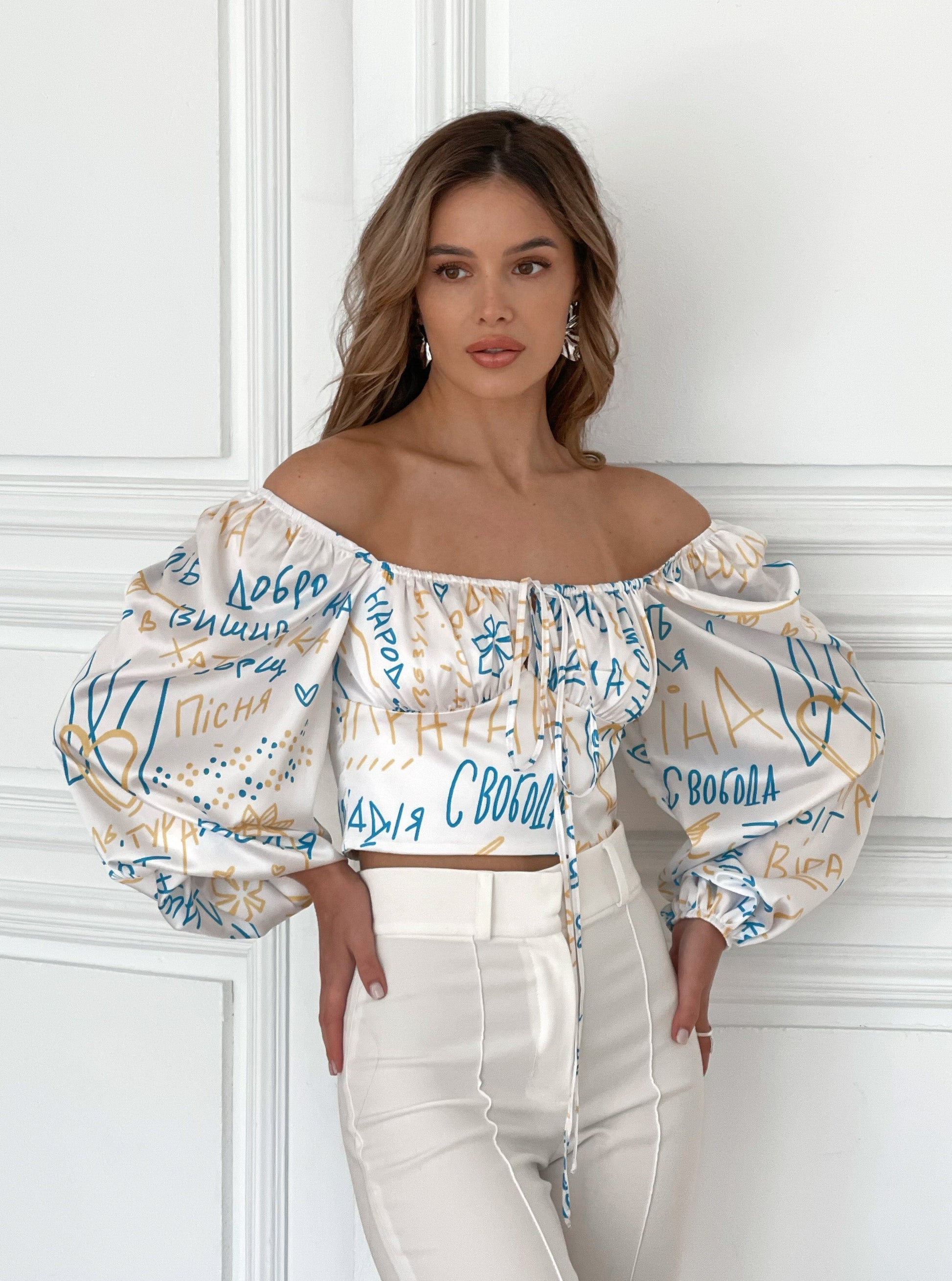 Близькі до серця кожному українцю кольори свободи та незламності! Топ з патріотичним принтом розроблений за мотивами вишиванки стане ідеальним доповненням образу до свята або фотосесії.
