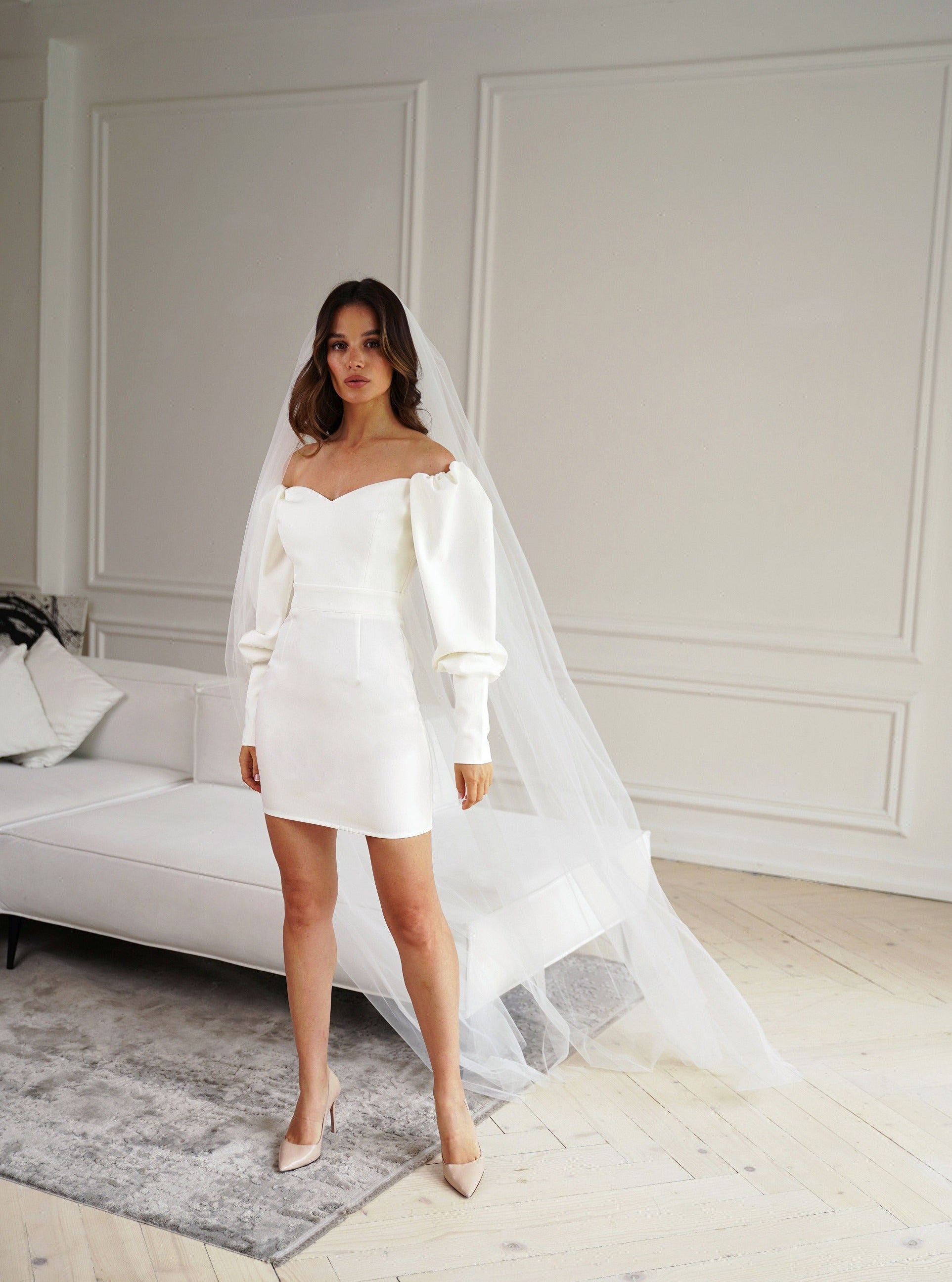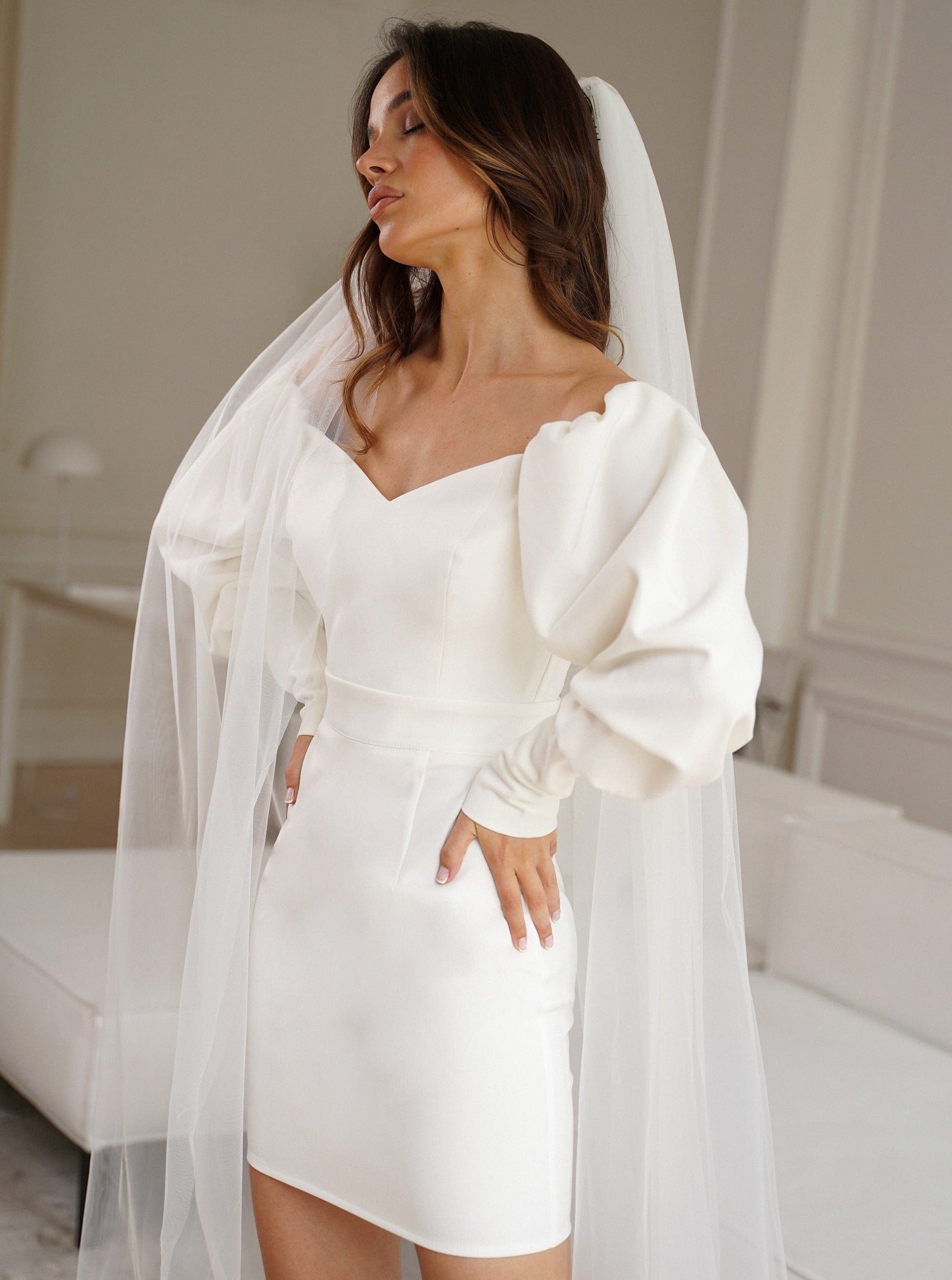 Чарівність цієї сукні нікого не залишить байдужим! Довжина міні відкриє красу ніжок, приталений фасон підкреслить всі переваги жіночої фігури, а відкриті плечі в тандемі з подовженими рукавами додадуть образу чуттєвості і витонченості. Додайте плоскі босоніжки для прогулянок або масивні прикраси та високі підбори для вечірнього виходу.