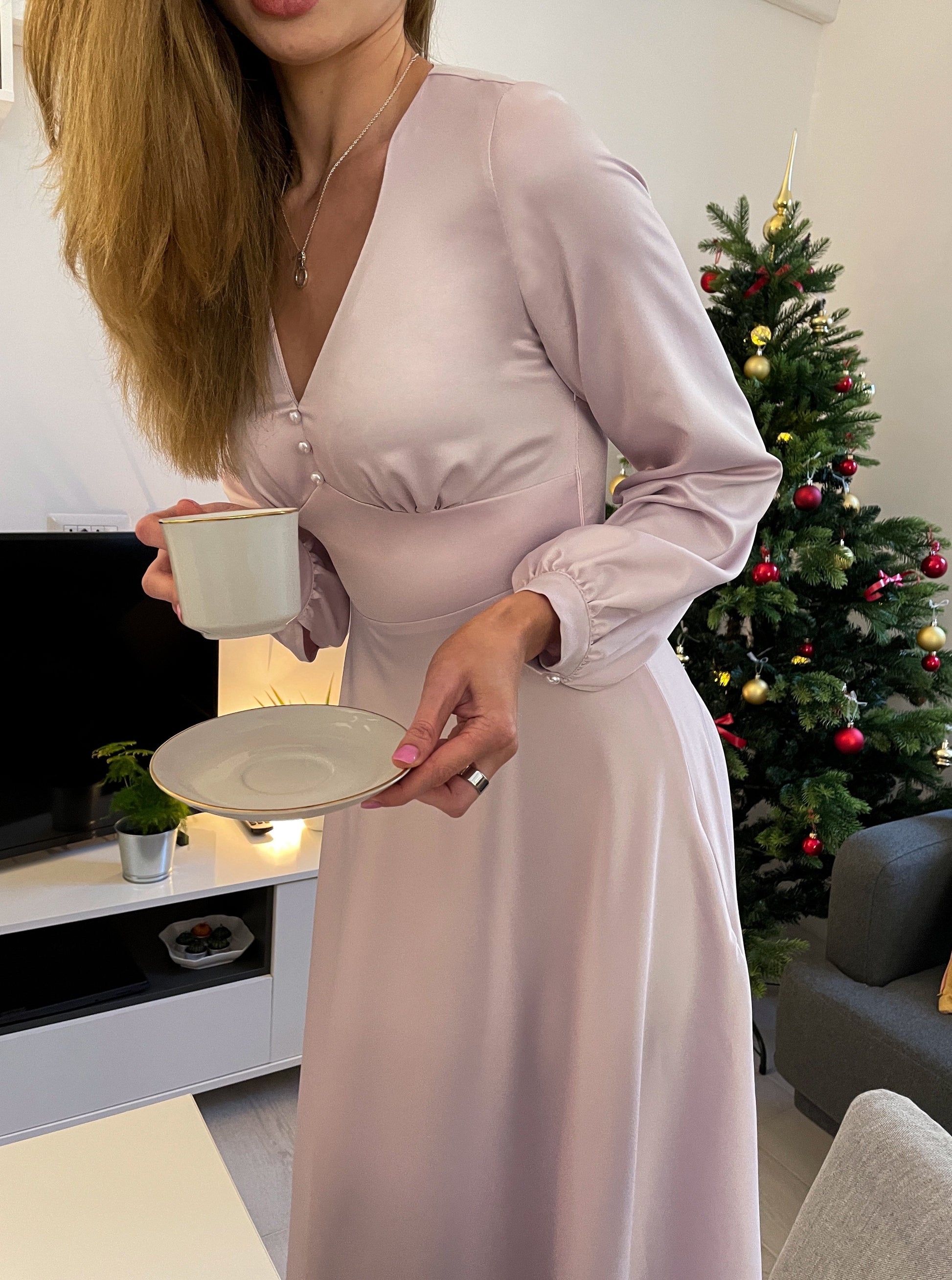 Чуттєвість і ніжність - так коротко можна охарактеризувати цю модель. Легка тканина з перлинним блиском преміум якості, вивірений крій, що підкреслює красу жіночих форм та перламутрові гудзики, що завершують образ. Ми впевнені, що вам захочеться носити його частіше!