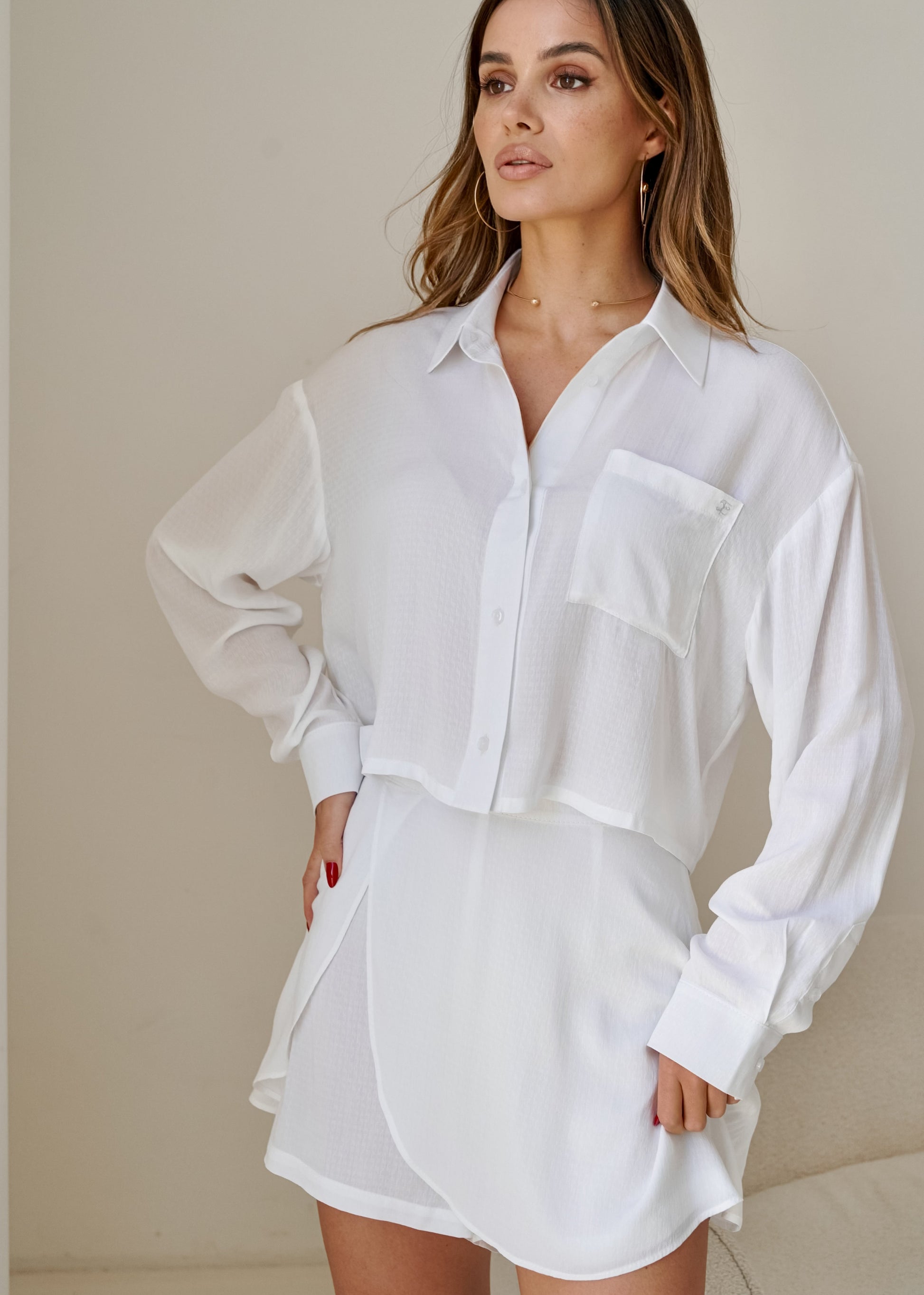 Відчуйте розкіш невагомої італійської віскози, яка практично не відчувається на тілі! Рубашка оверзайз з довгими рукавами захищатиме від сонця, але за бажанням рукавчики можна легко підняти вверх завдяки широким манжетам. У поєднанні з шортами-спідницею утворюється романтичний та ніжний літній образ, який, ми впевнені, стане улюбленцем вашого гардеробу!